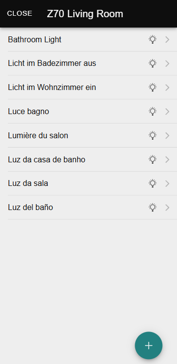 В этом разделе отображаются объекты управления, настроенные в ZRCD, такие как освещение, жалюзи, климат и индикаторы.